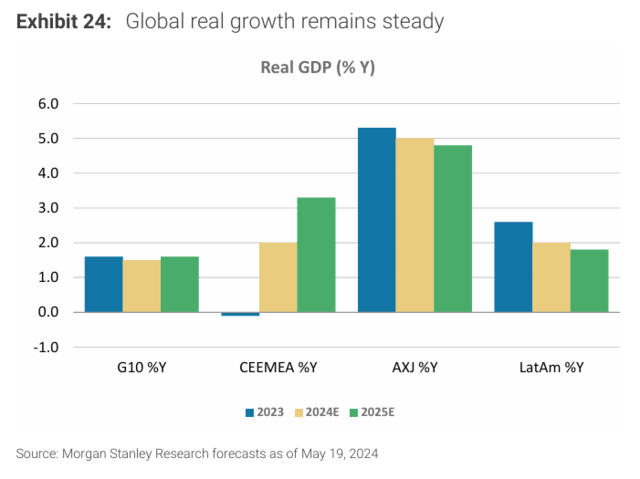 大摩预计,2024-25 年全球经济增长将保持稳定,中国2024年和2025年的出口增长率分别为 8%和 6%,这也意味着航运业受影响,可能会在2024-25年经历一个短暂的上升周期,一旦红海干扰消失,集装箱航运业将重回周期性低迷。