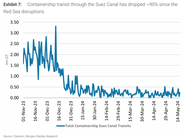 大摩早前一度认为,红海动荡引发的航运市场反弹,并不会持续很久,因为: